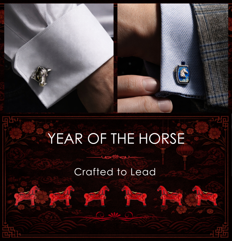 Tonneau Ascot Horse Cufflinks In Palladium Plated Base Metal With Lapis