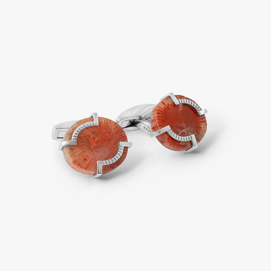 BEST SELLERRound Carbon Gear Cufflinks in Palladium Plated