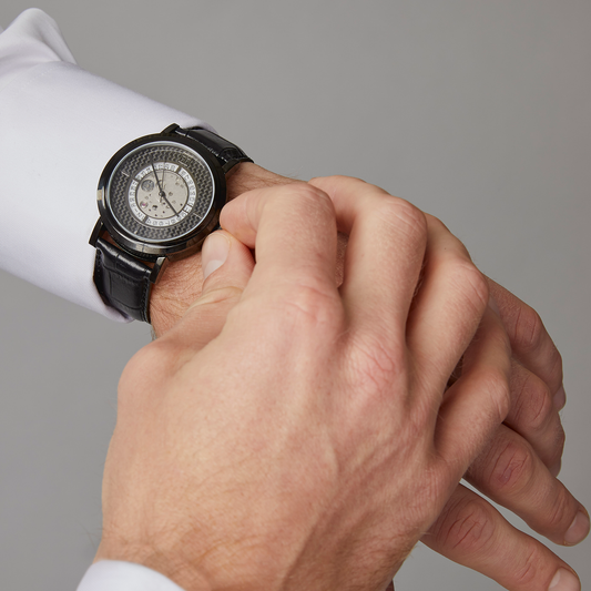 Esposto Leather Automatic Watch In Black With Carbon Fibre Steel