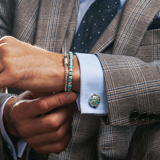 Dome Cutwork Cufflinks In Palladium Plated Base Metal With Turquoise Enamel