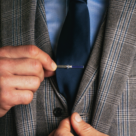 Carousel Gear Tie Clip In Palladium Plated Base Metal With Navy Enamel