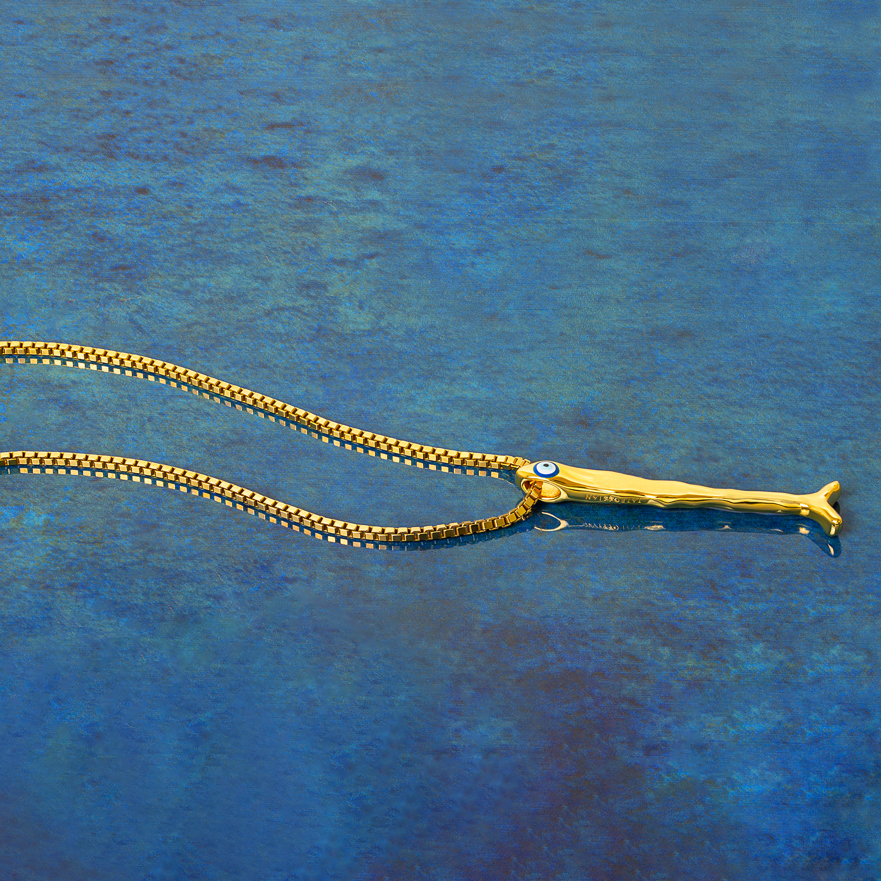 Feng Shui Fish Necklace In Yellow Gold Plated Sterling Silver
