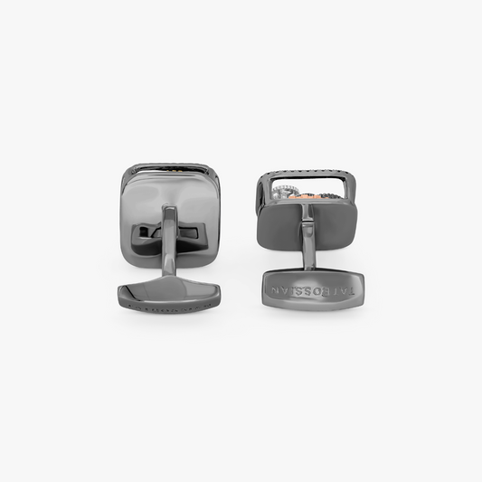 Single Tourbillon Gear Cufflinks in Gunmetal and Black Enamel