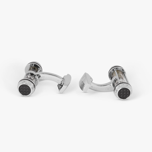 BEST SELLERRound Carbon Gear Cufflinks in Palladium Plated