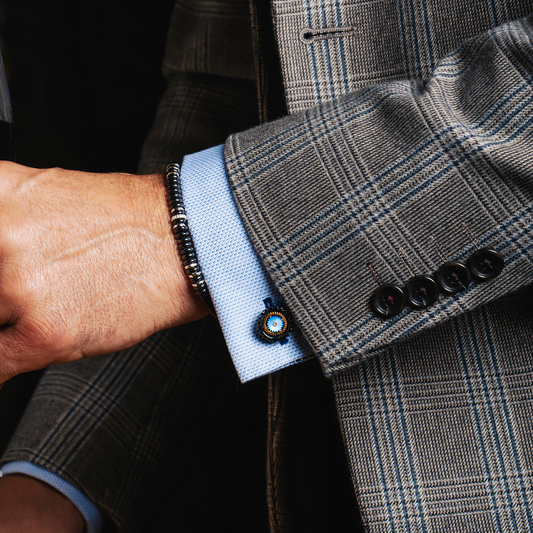 Bullseye Cufflinks And Studs Set With White Mother of Pearl