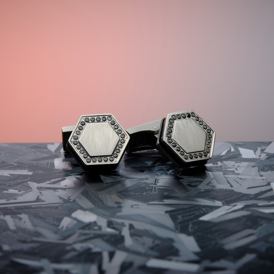 Automobili Lamborghini Hex Cufflinks In Titanium With Black Diamonds