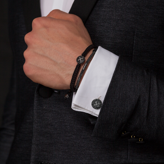 Understated yet elegant, the Button Pave Cufflinks with Black Diamond in Sterling Silver are designed for those who appreciate subtle luxury. The classic button shape is enhanced by the addition of black diamonds, offering a unique and modern interpretation of a traditional design. Crafted from sterling silver, these cufflinks are versatile enough to complement any outfit.
