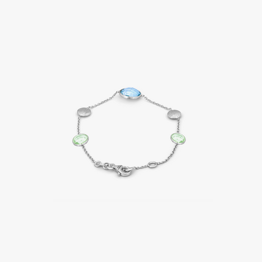 Kensington Bracelet in 9K Satin White Gold with Topaz and Green Amethyst