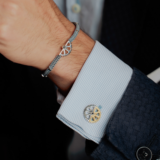 If you want to pack a punch with your outfit and be powerful and daring, our round gear rose gold cufflinks are the best choice. These are inspired by mechanical watch movements and brilliantly contrast timelessness with modernity that is unique and eye-catching. Marvel at the gears working within the face of the cufflinks and make a memorable entrance to any event. These will really start conversations and make you feel confident while looking sleek.