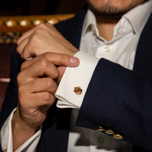 We also have our classic and iconic cable knot cufflinks in rose gold to have a subtle touch of unique colour that enhances your sophistication. These are striking up close with polished, clean lines and fluid movements.