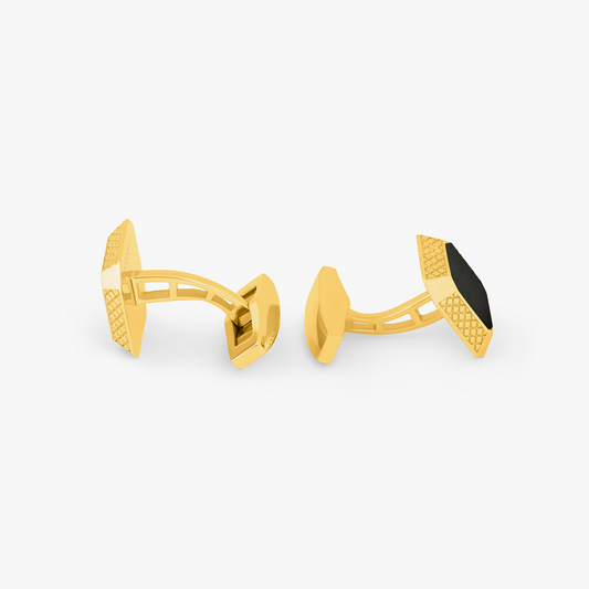 Signature Octo Cufflinks In Yellow Gold Plated Silver with Onyx