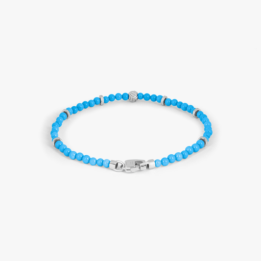 Nodo Beaded Bracelet In Rhodium Plated Silver With Sleeping Beauty Turquoise