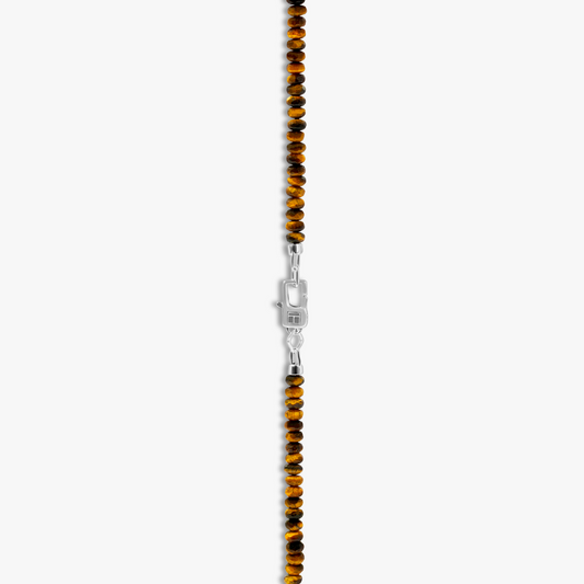Nodo Beaded Necklace in Rhodium Silver with Brown Tiger Eye