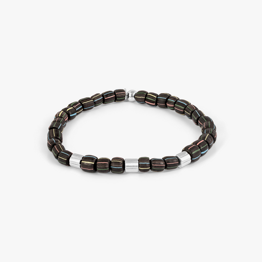 Classic Discs Beaded Bracelet In Rhodium Plated Silver With Black Agate