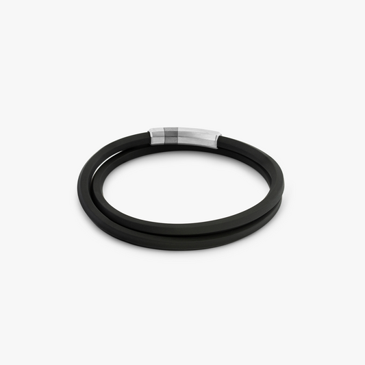 Black rubber Octagon click bracelet with rhodium-plated sterling silver