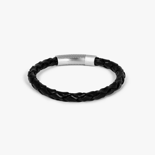 Click Trenza Bracelet In Black Rhodium Plated Silver with Black-coloured Leather