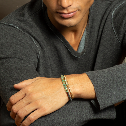 Combining colours, metals, and themes, reminiscent of the occasion has never been easier with our bracelets for men – whether it is for the beach or the bar, for the office or the opera – stacking three, four, five or more men's bracelets will symbolise confidence, empathy, a spirit of adventure, and a journey of discovery. This can create a statement or add a touch of class to basic daily outfits. No matter what combination is used, every man is bound to stand out and exude confidence when stacking our bracelets!