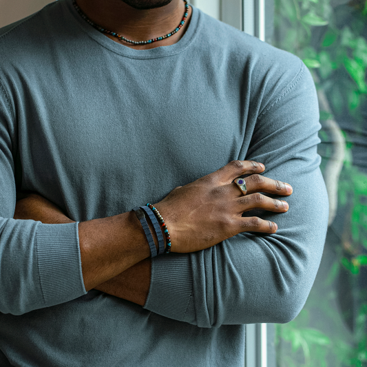 To elevate formal or semi-formal outfits, our precious stone bracelets and semi-precious stone bracelets are the ideal companions. These integrate colourful and sophisticated gems or diamonds to make any man stand out from the crowd and be fierce. The glistening of diamonds or gems on the wrist can instantly turn heads, making them the perfect accessory for any event.