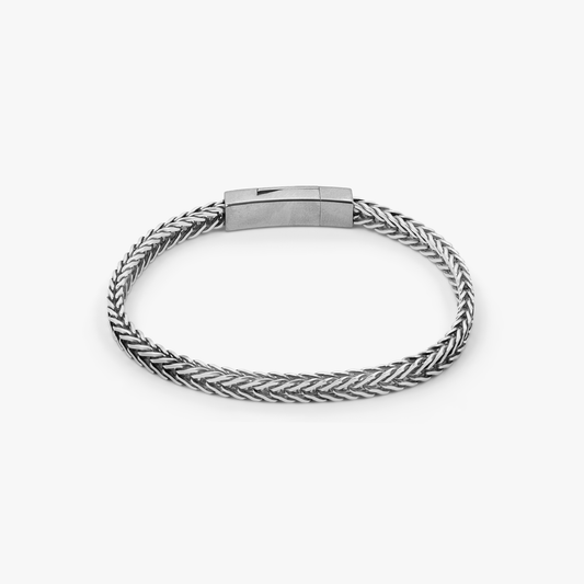 Herringbone Click Coda Di Volpe Bracelet In Oxidised Silver