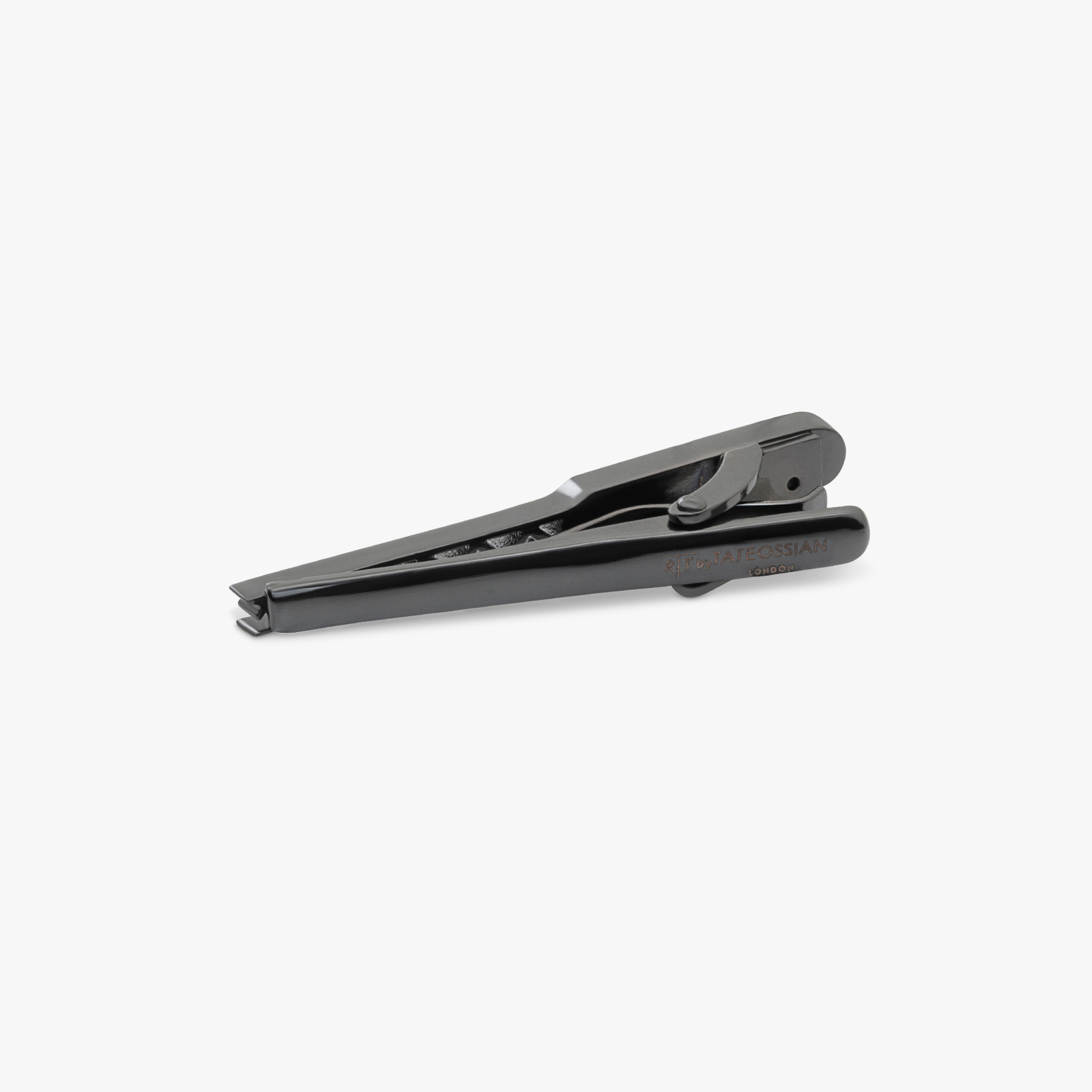 Black IP stainless steel RT Elements tie clip with hematite