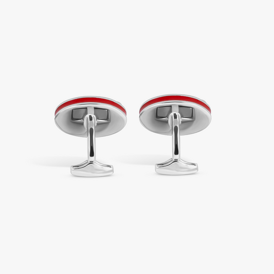 Sports Ice Racing Car Cufflinks in Palladium Plated with Red Enamel