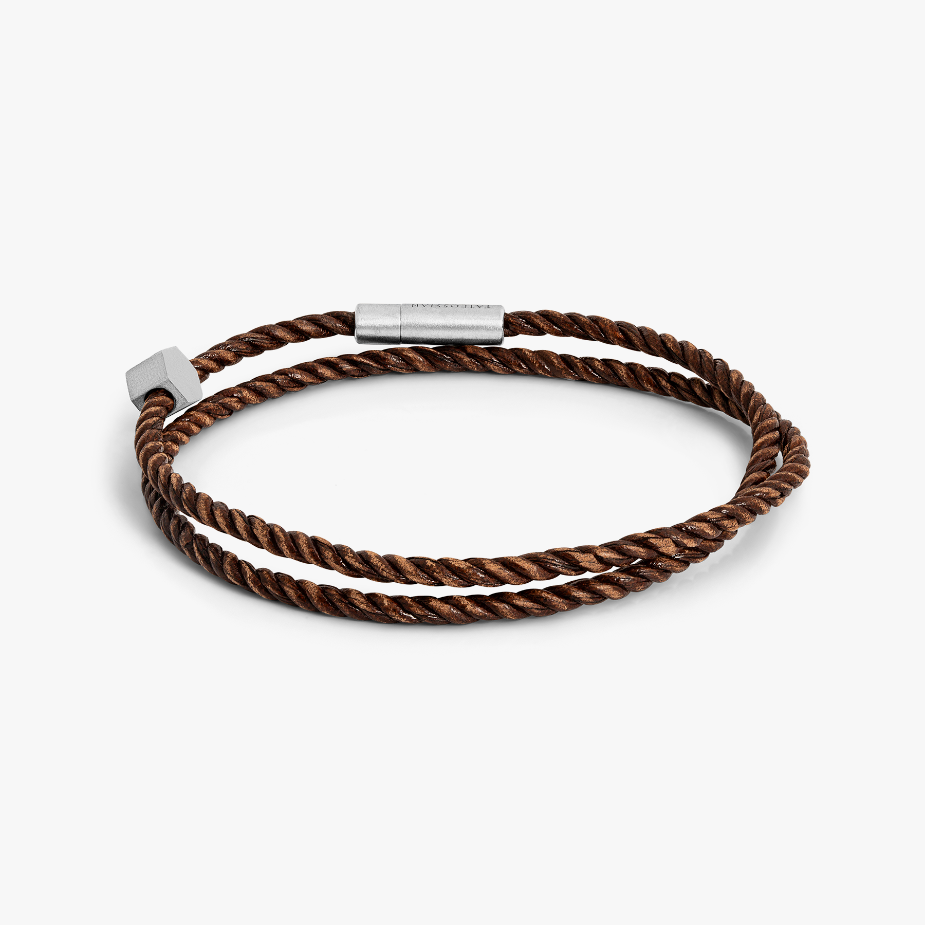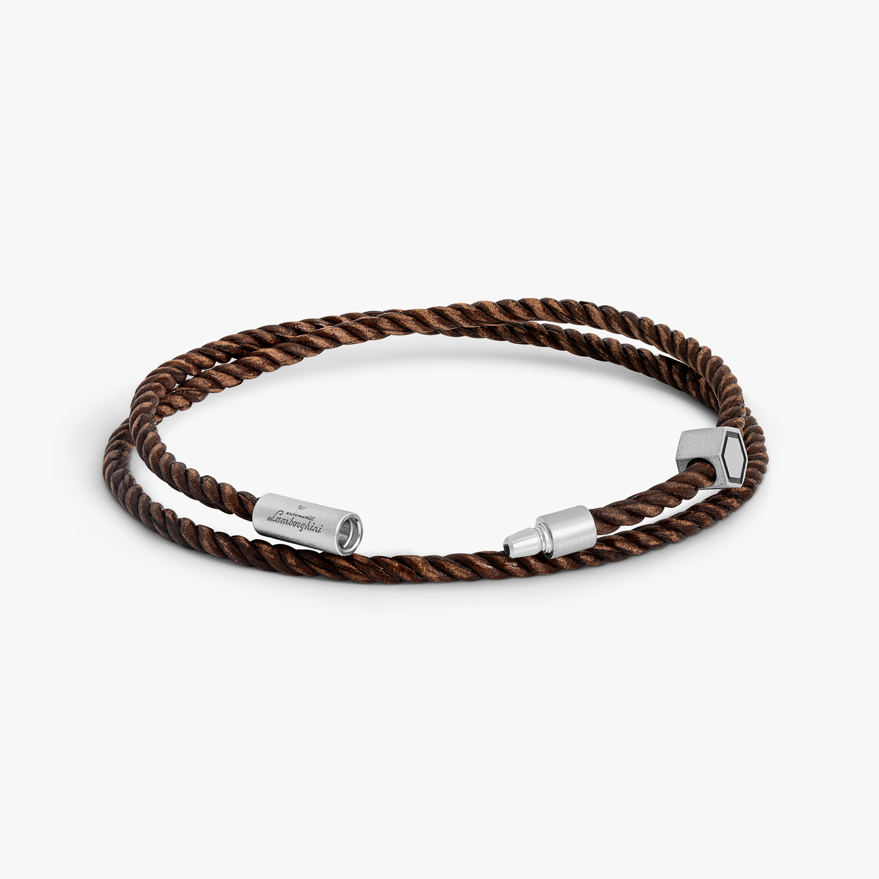 Minimalist in design, this 4mm double-wrap bracelet combines a polished rhodium-plated Mini Pop clasp with supple, genuine rope leather. A brushed square bead with rounded corners adds a tactile focal point, balancing sleekness with detail. Designed to reflect Automobili Lamborghini’s elegance in motion, the wrap style delivers layered versatility with a modern edge. Available in Medium (39cm) or Large (41.5cm) wrist lengths for a precise, comfortable fit.