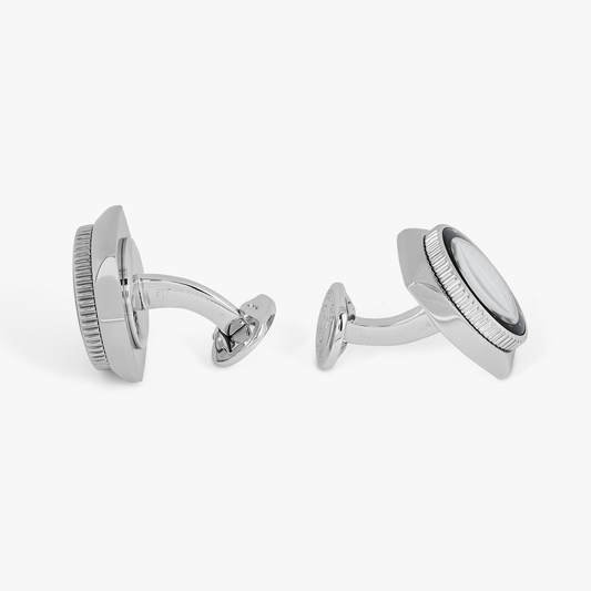Rotare Gear Cufflinks in Rhodium Plated with White Mother of Pearl