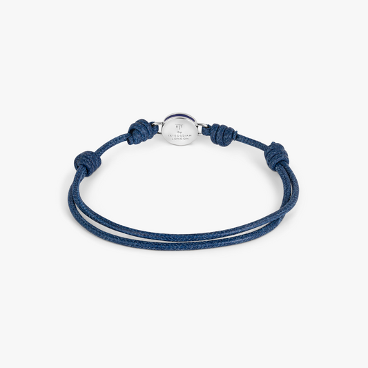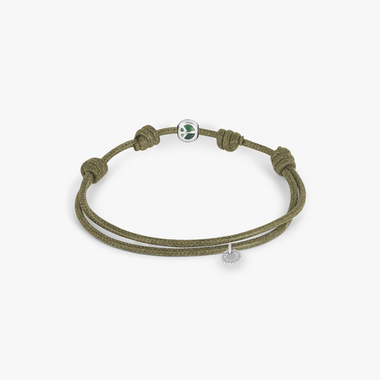 Protective Wax Cord Peace Bracelet In Rhodium Plated Sterling Silver With Green Enamel