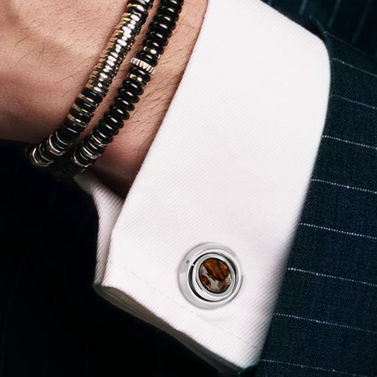 Swivelling Meteorites Cufflinks In Palladium Plated Base Metal With Brown Stony-Iron Meteorite (Limited Edition)