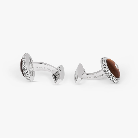 Signature Chrysanthemum dome cufflinks with tiger eye in sterling silver