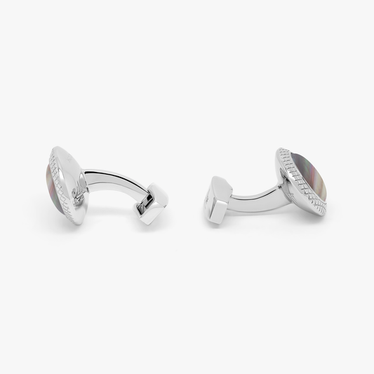 Signature Round Cufflinks and Stud Set in Rhodium Plated Silver with White MOP