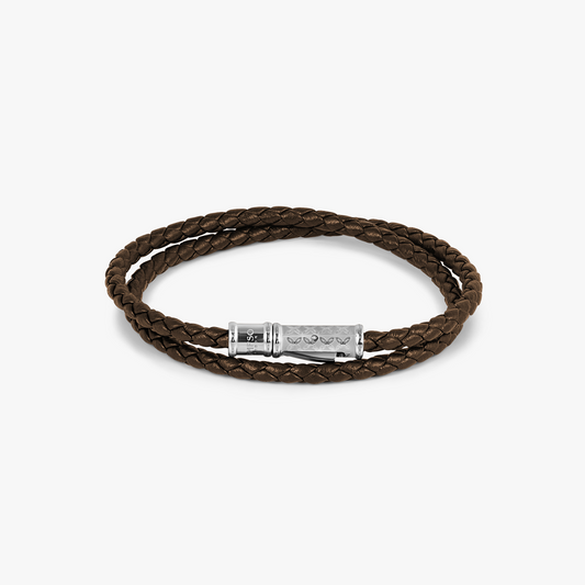 THOMPSON Lucky Clover Double Wrap Bracelet In Brown Leather
