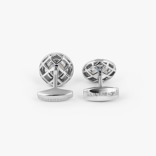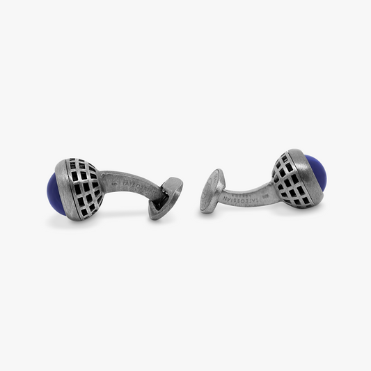 Signature Octo Cufflinks In Rhodium Plated Silver with Lapis