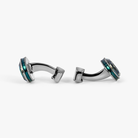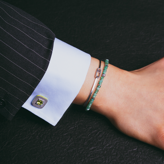 Refratto Cufflinks With Green & Rhodium Plated Silver