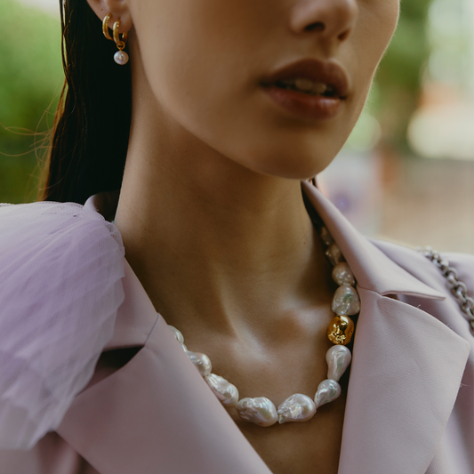 Medici Necklace with Yellow Gold Plating and White Pearl