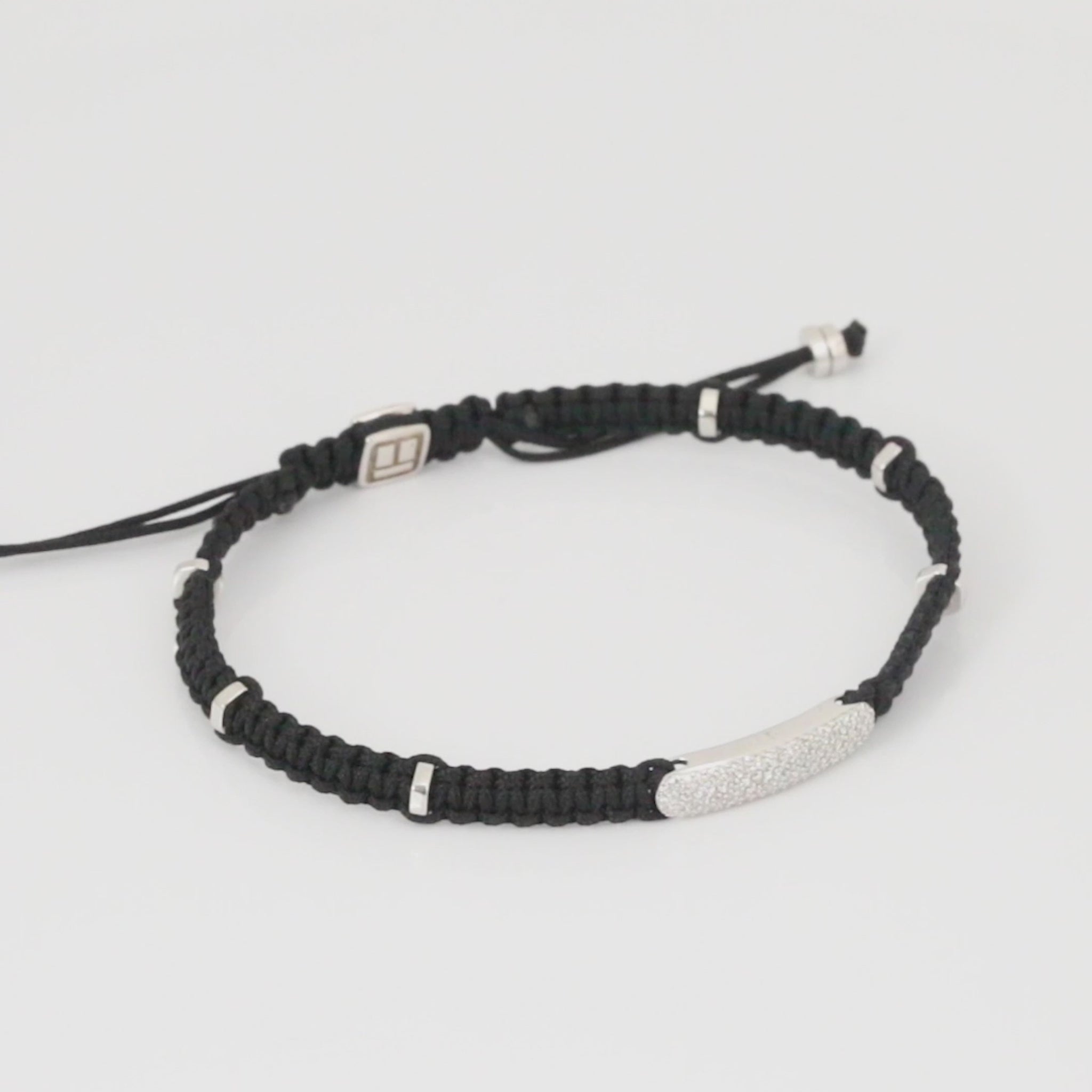 Diamond Baton bracelet in black macrame and sterling silver
