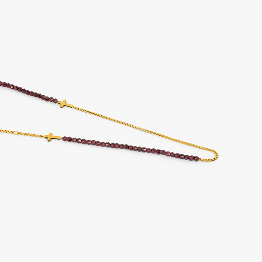 Garnet Birthstone Necklace In Rhodium Plated Sterling Silver