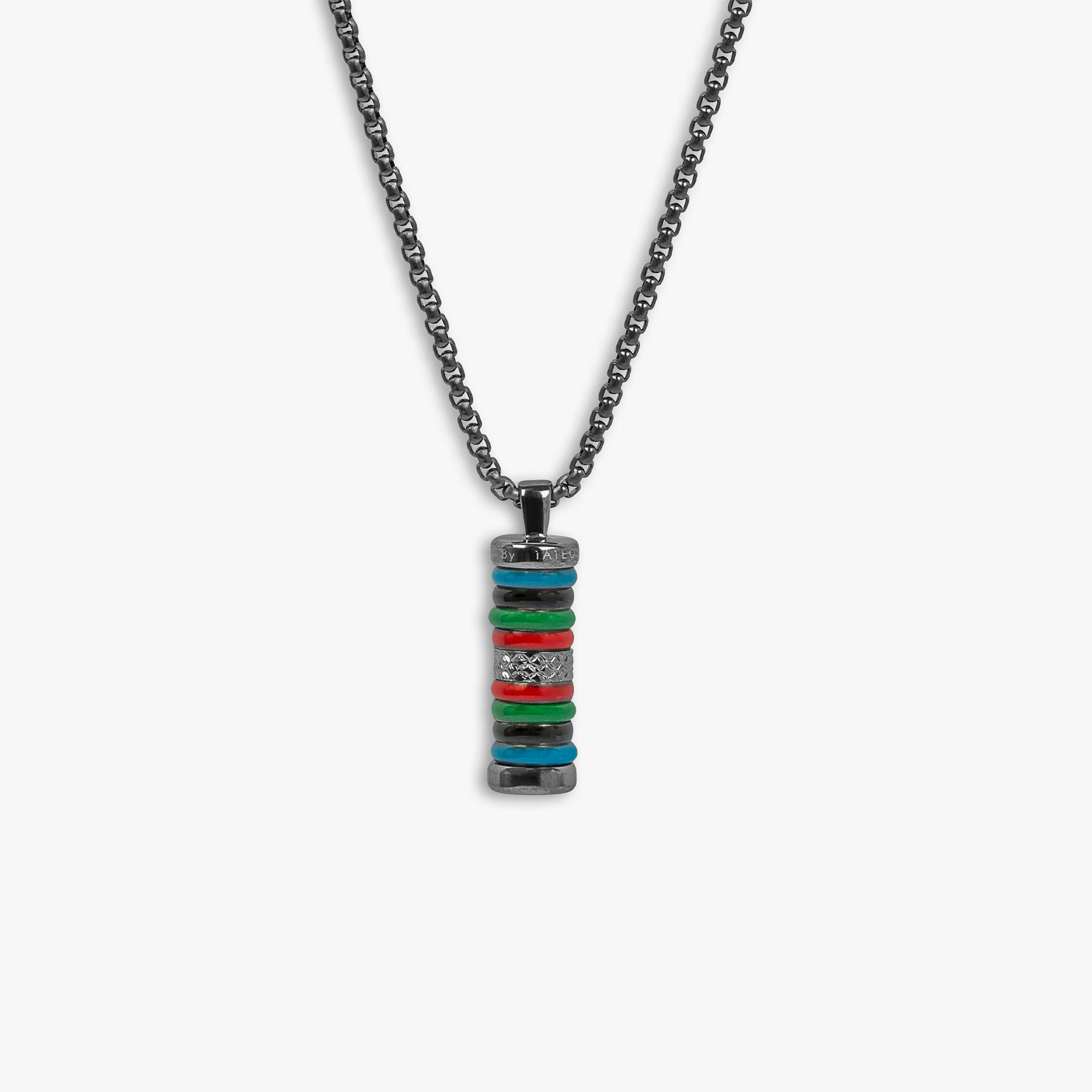 Tokyo Rings Cylinder necklace with multicolour enamelblack IP plated steel