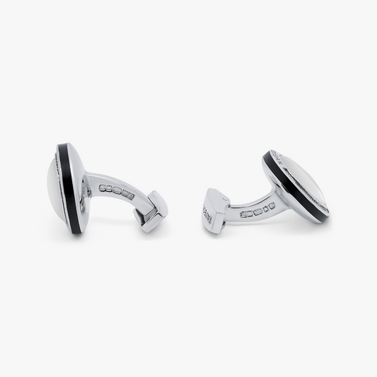 Signature Round Cufflinks in Rhodium Plated Silver with White Mother of Pearl