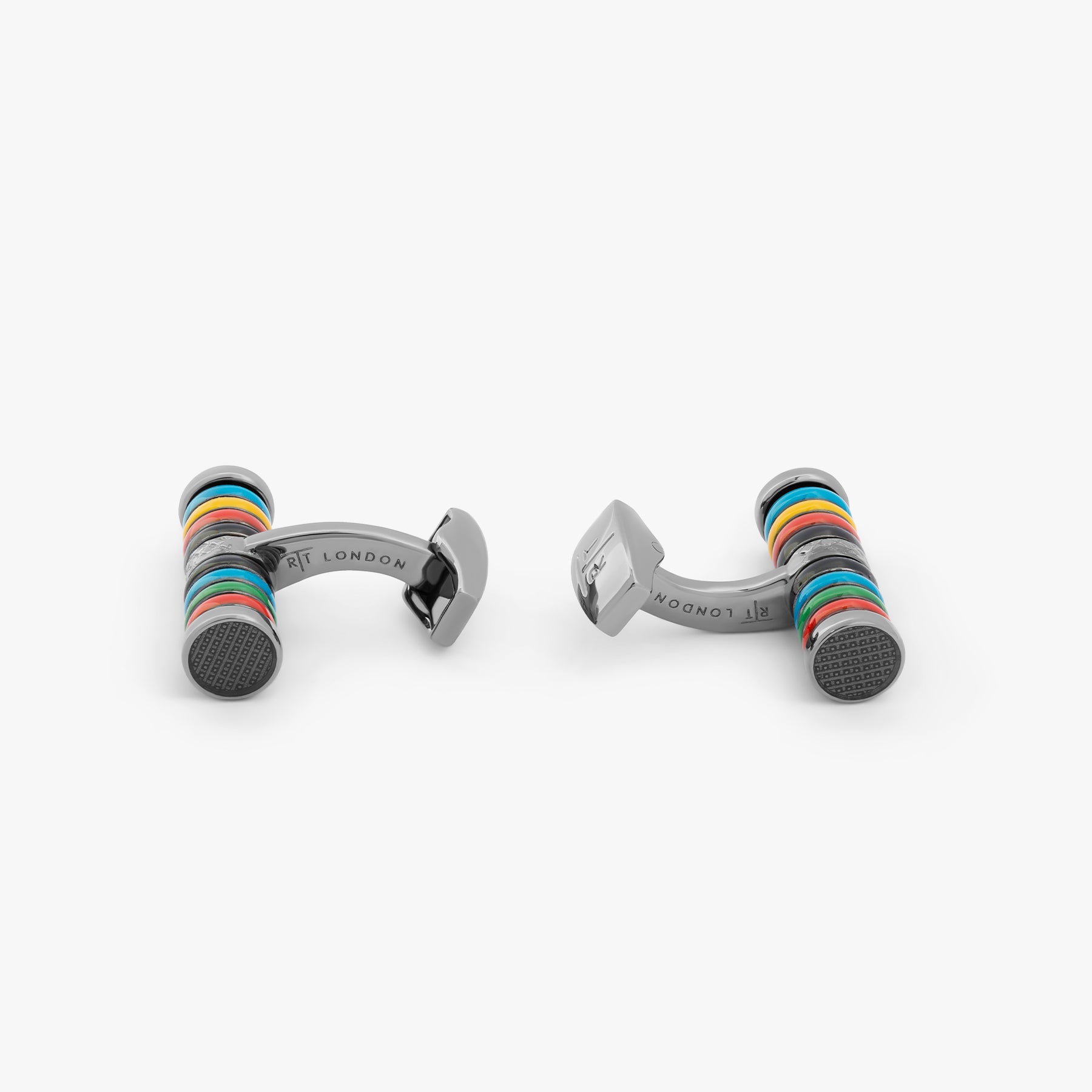 Tokyo Rings Cylinder cufflinks with multicolour enamel and palladium finish