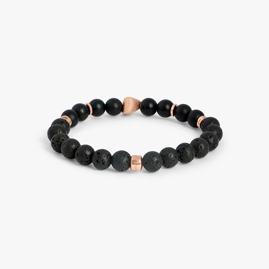 Nugget Bracelet In Rose Gold Plated Silver with Onyx Beads