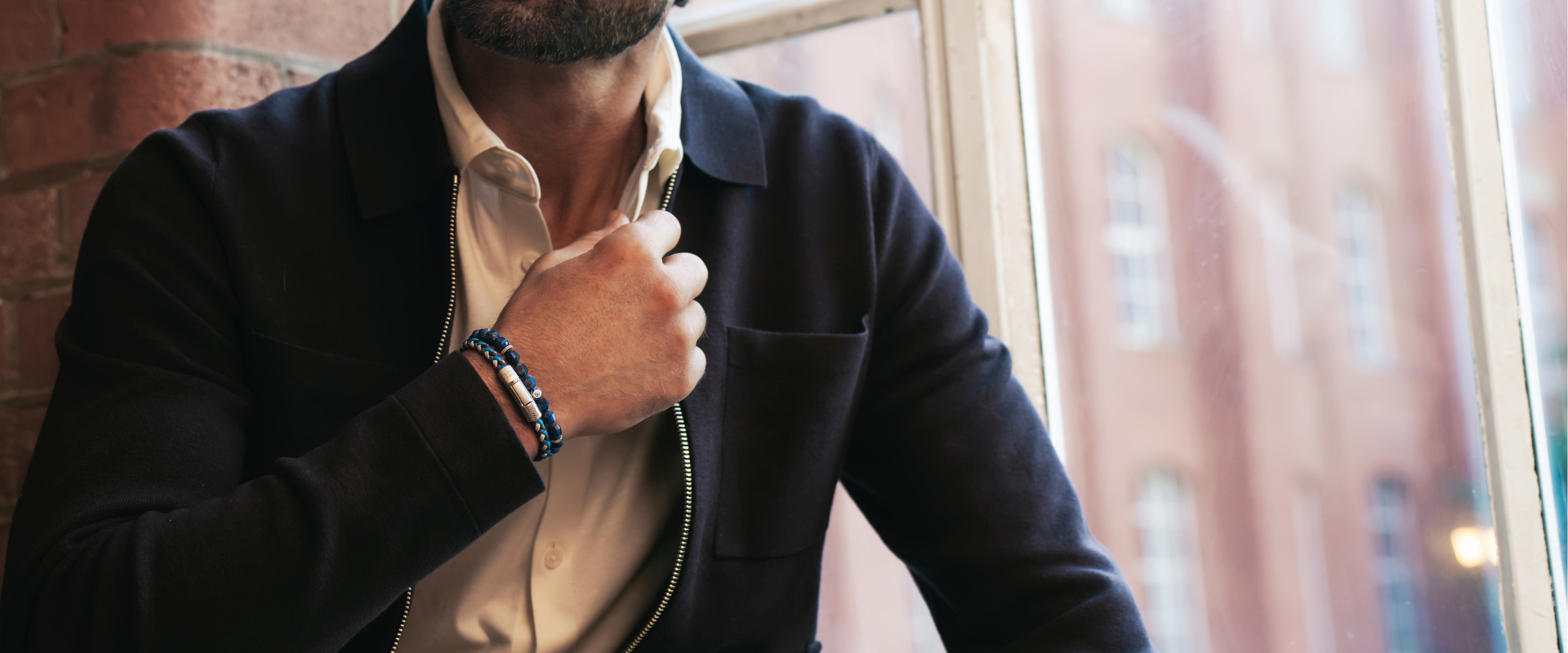 NEW ARRIVALSChevron Click Bracelet In Matte Blue Black
