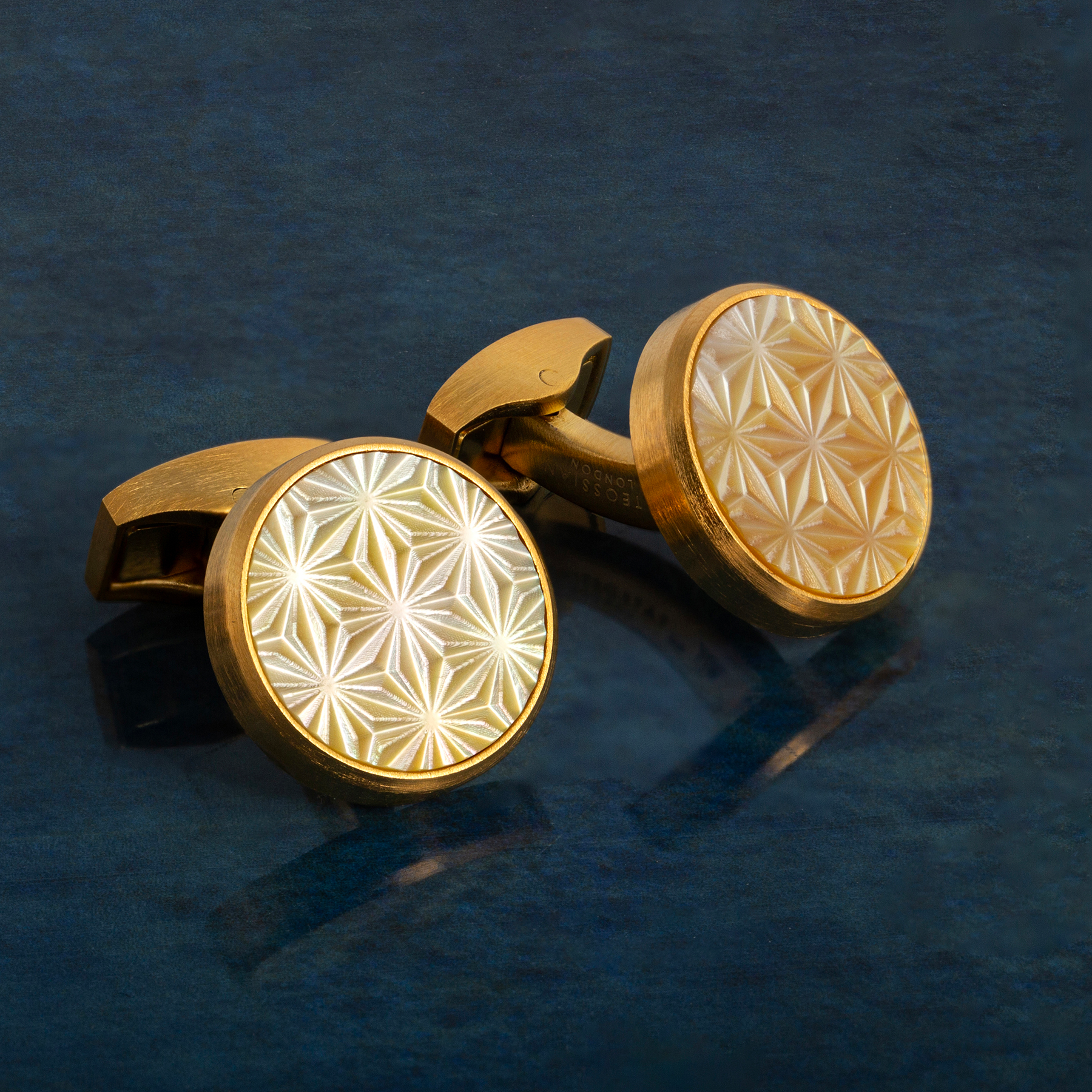Asanoha Semi -Precious CufflinkYellow MOP & Palladium Plated