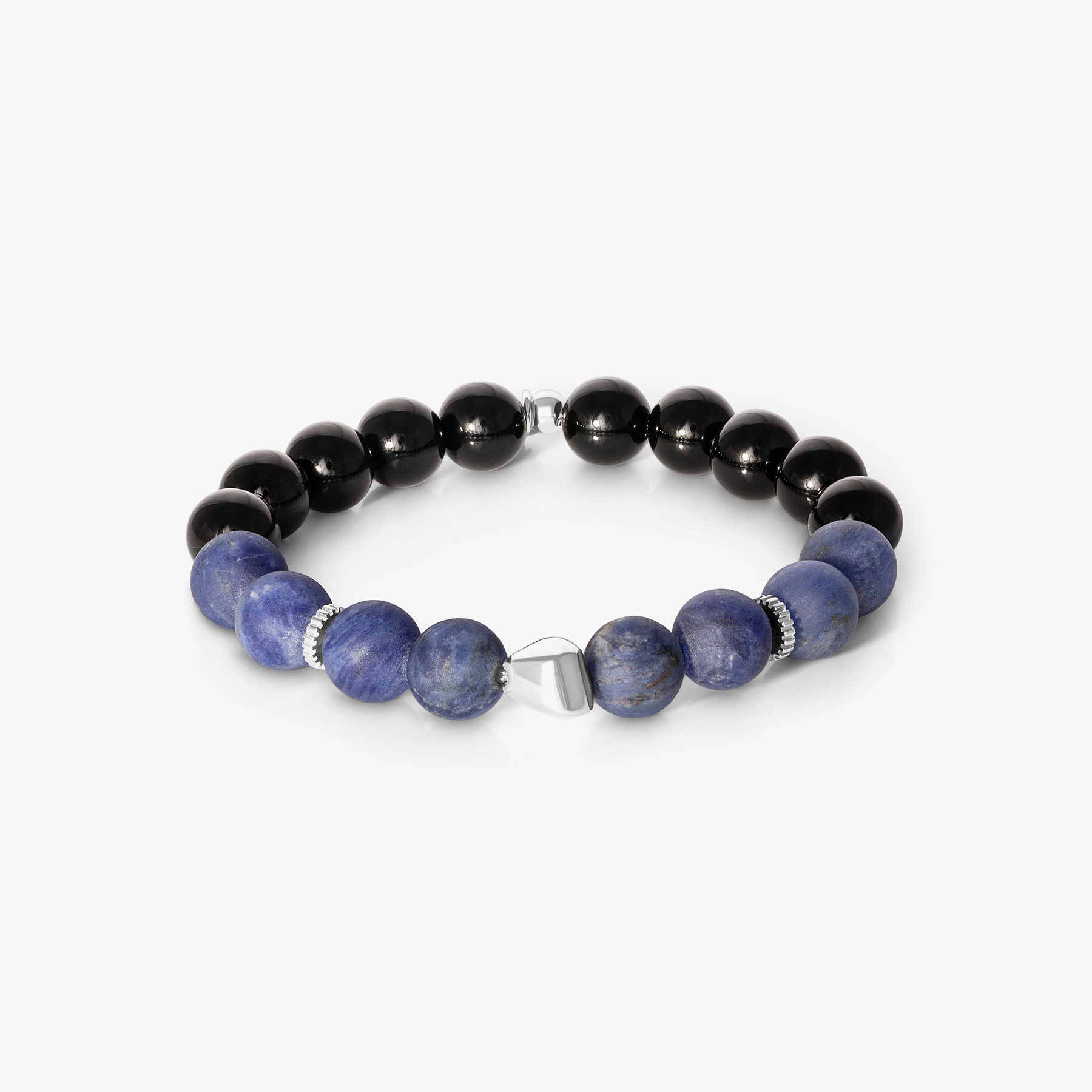Maxi Nugget Beaded BraceletRhodium plated with Sodalite & Black Agate
