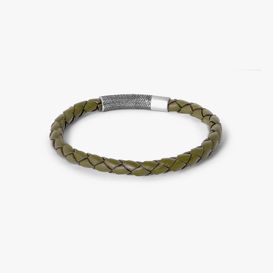 NEW ARRIVALSVintage Herringbone Click Bracelet In Khaki Leather