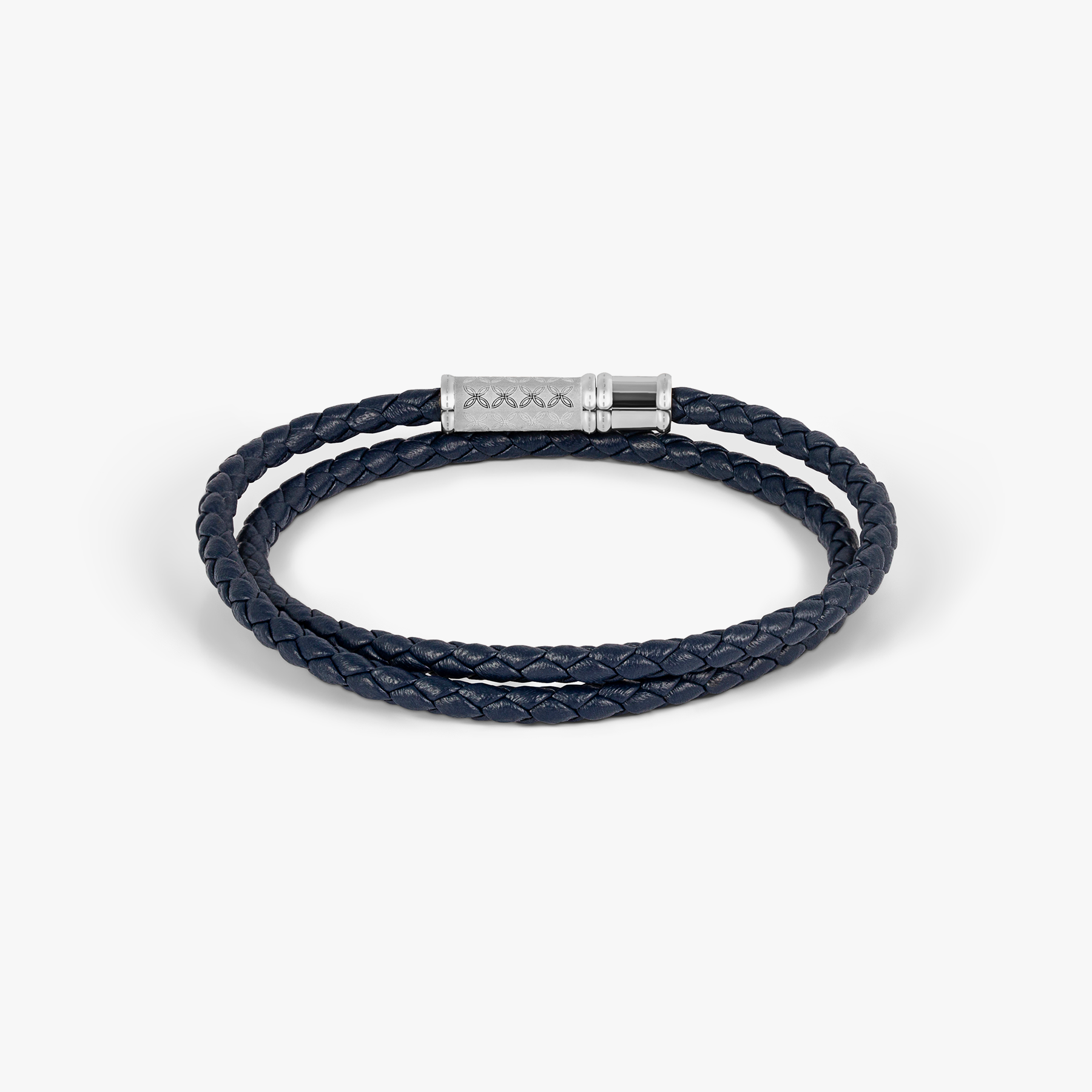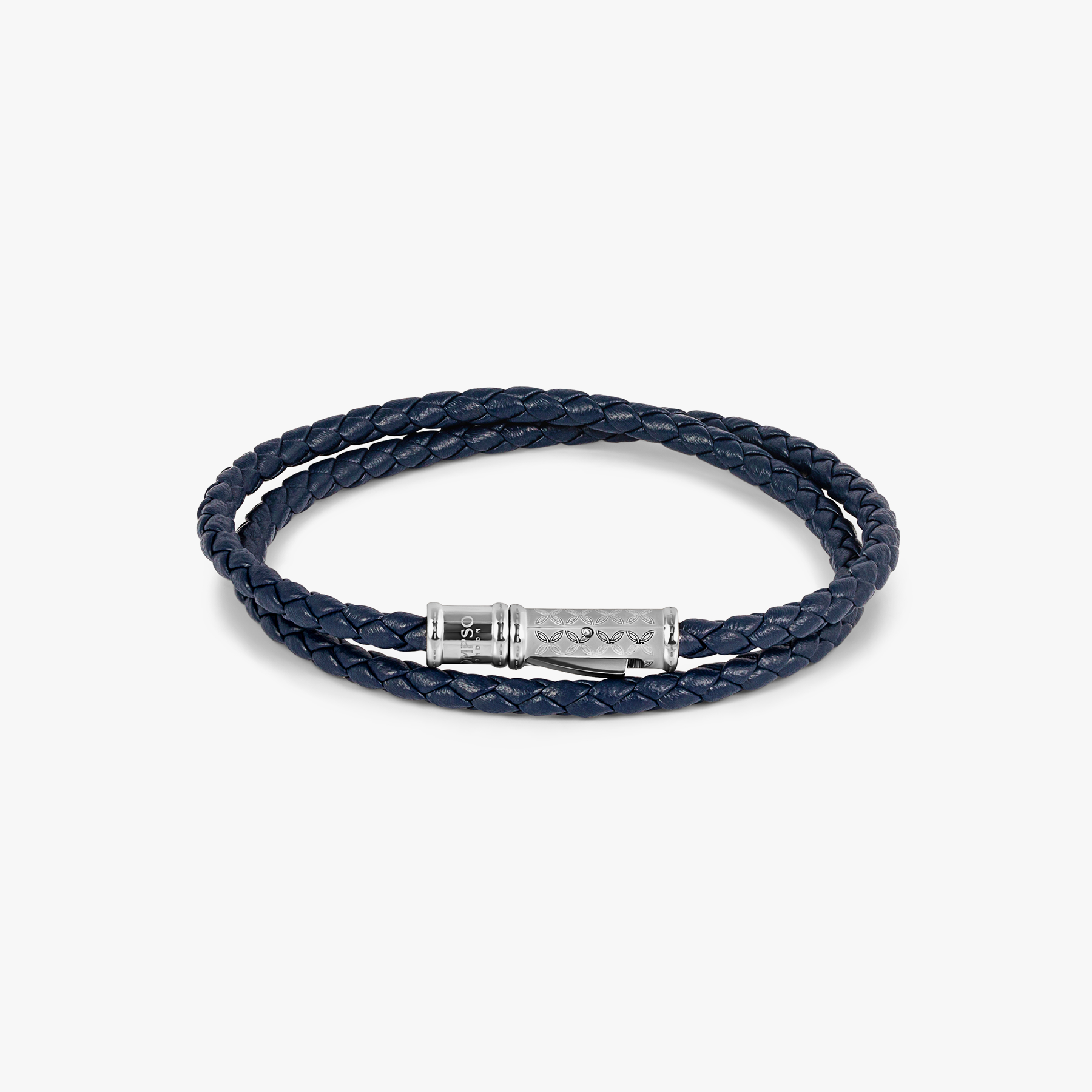 THOMPSON Lucky Clover Double Wrap BraceletNavy Leather