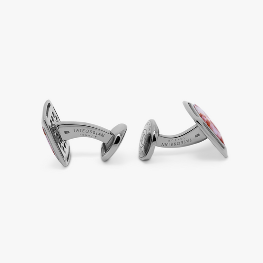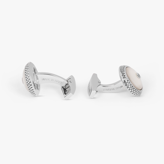 Signature Chrysanthemum dome cufflinks with white mother of pearl in sterling silver