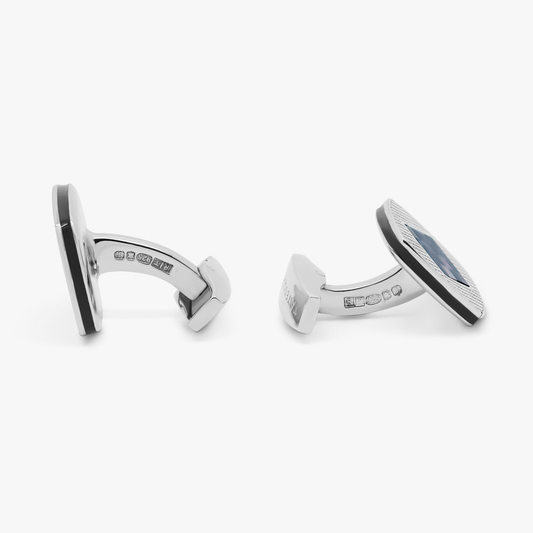 Chequer Cufflinks In Rhodium Plated Silver with Black MOP & Onyx