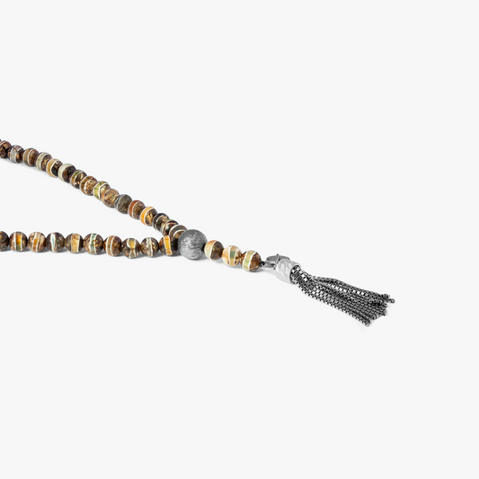 Capri Dagger Rosary Necklace In 18K Yellow Gold Plated Silver With Tiger Eye