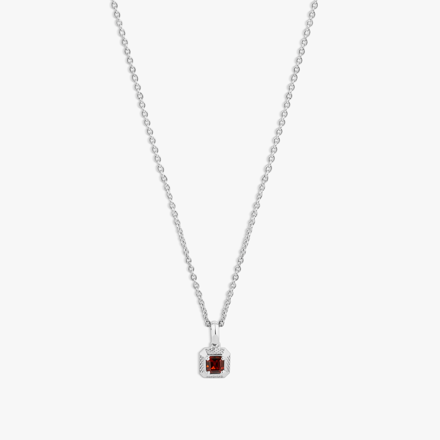 Garnet Birthstone Necklace In Rhodium Plated Sterling Silver